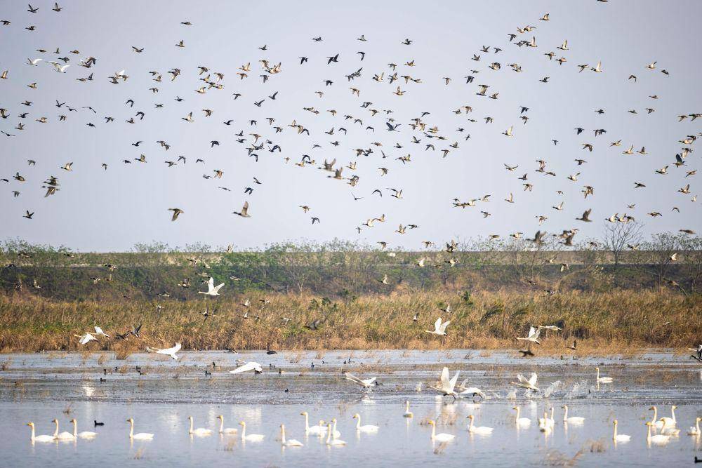 2024年11月12日在上海崇明东滩鸟类国家级自然保护区拍摄的候鸟。新华社记者 王翔 摄