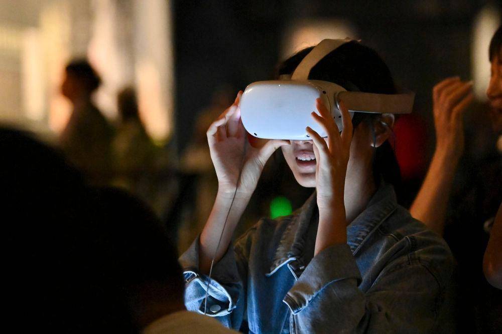 2024年7月22日,游客借助VR设备沉浸式游览莫高窟第285窟虚拟场景。新华社记者 郎兵兵 摄